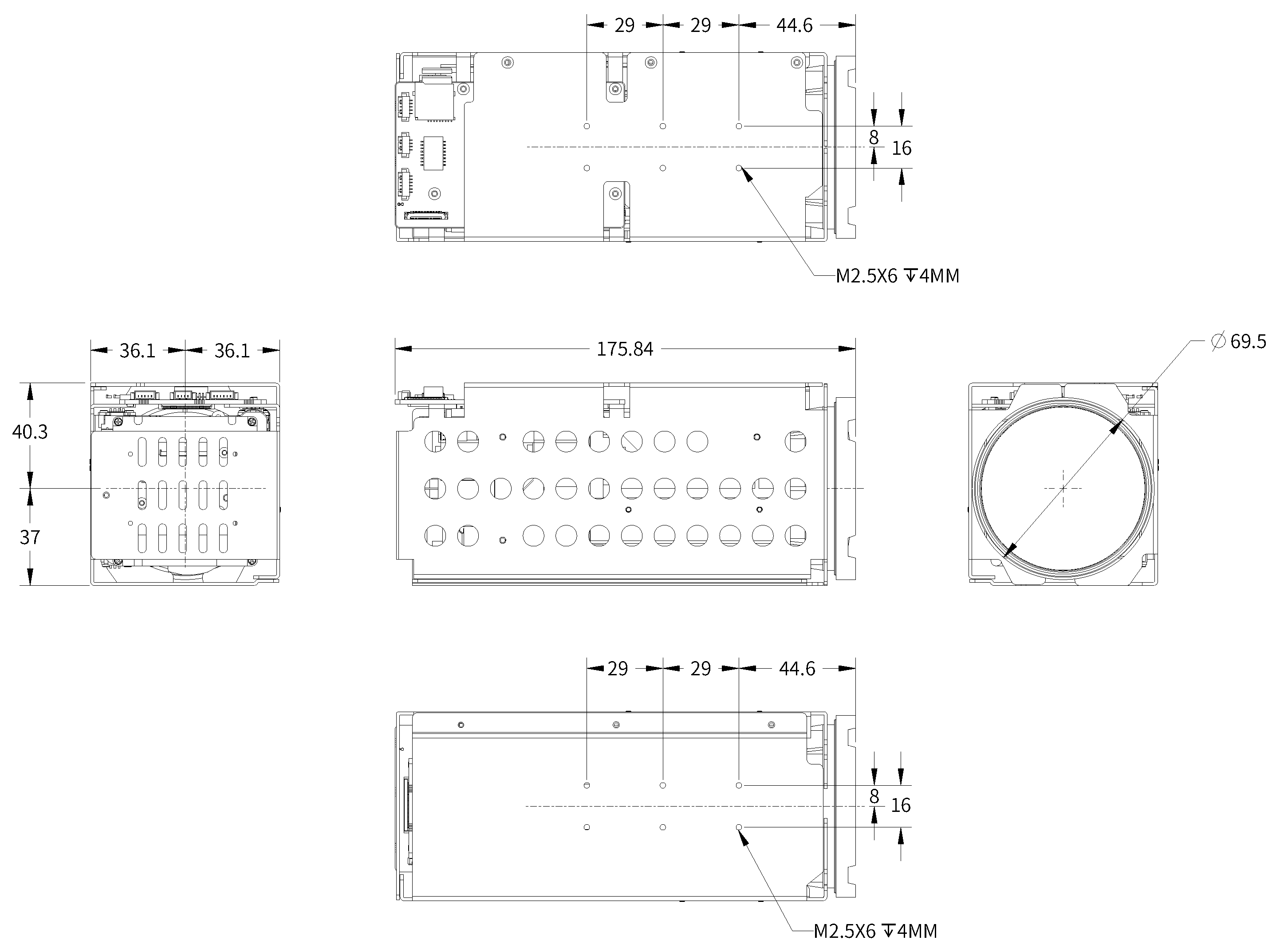4 ፒን ኢተርኔት ወደብ, 6PIN ኃይል እና URAR ወደብ, 5PIN ኦዲዮ ወደብ. 30PIN MIPI |
